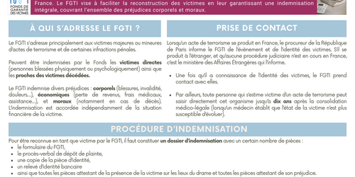 En tout état de cause, à la suite d’un évènement traumatique il est important de rester attentif aux troubles pouvant intervenir sur le plan psychique et physique. Si vous en ressentez le besoin, la FENVAC peut vous orienter vers des praticiens susceptibles de répondre à vos besoins et vous expliquer notamment les modalités de financement d’un éventuel suivi.